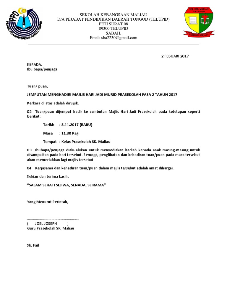 Contoh Surat Jemputan Majlis Hari Guru By Kur_37Kathy 09 Aug, 2022 Post a Comment Surat Jemputan Sambutan Hari Guru 2015 Surat Jemputan Sambutan Hari Guru 2015 Surat Jemputan Majlis Hari Jadi Fasa 2 2017 Pdf 07052018 Surat Jemputan Sambutan Hari Guru 2018 Contoh Surat Jemputan Hari Guru Pibg Pdf Share No comments for "Contoh Surat Jemputan Majlis Hari Guru"
